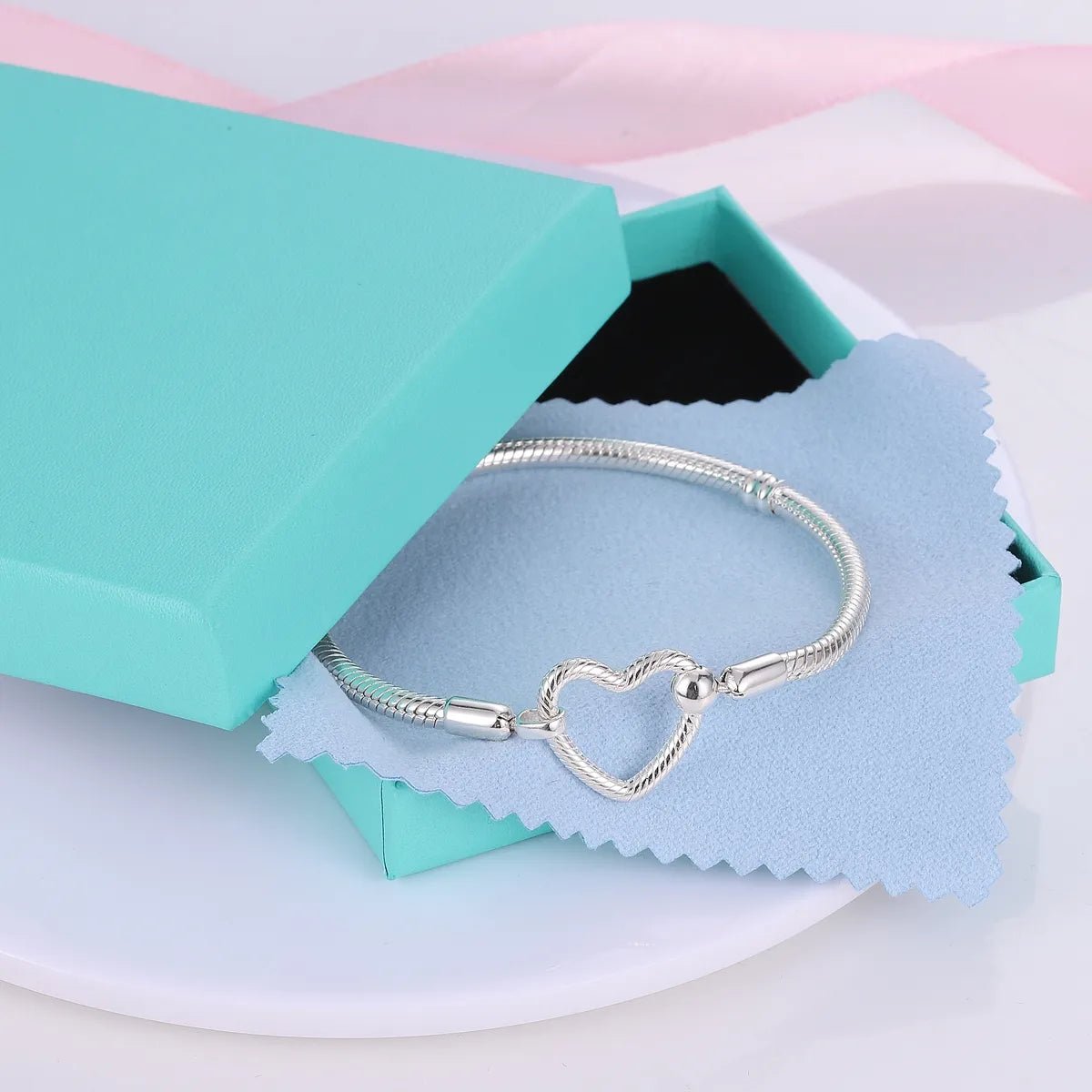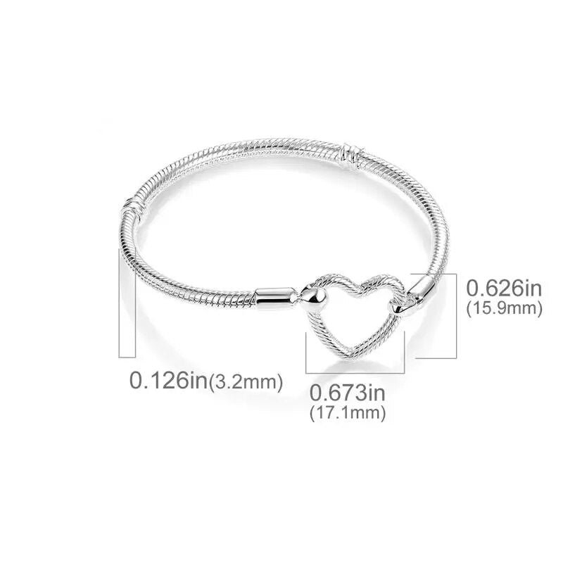 Bracelet pour charms fermoir mousqueton cœur en argent