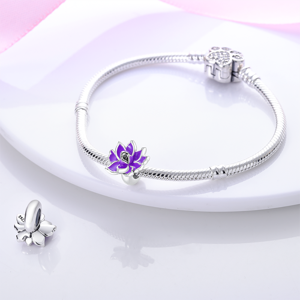 La fleur de lotus violette est une fleur qui symbolise la sagesse et la spiritualité. Elle est liée à l’eau et à l’air, à la pureté et à la transcendance, à la connaissance et à l’éveil. Elle représente aussi la paix, la sérénité et la compassion. Ce charm en forme de fleur de lotus violette s’adresse aux personnes qui ont un esprit sage, spirituel et profond, qui aiment méditer et se connecter à leur essence. Ce charm est idéal pour exprimer votre sagesse et votre spiritualité.
