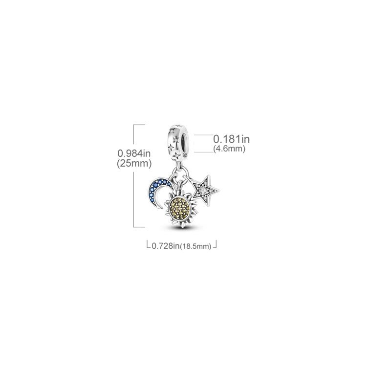 Le soleil est le symbole de la vie, de l’énergie et de la puissance. Les étoiles, ces astres lointains qui scintillent dans le ciel nocturne symbolisent le rêve, l’espoir et la guidance. Le quartier de lune est le symbole du renouveau, du changement et du cycle. Ce charm en forme de soleil étoiles et quartier de lune s’adresse aux personnes qui aiment la lumière et le rythme, qui savent s’adapter aux situations et qui ont une vision positive de la vie. Ce charm est idéal pour apporter une touche de brillance et de mouvement à votre look.