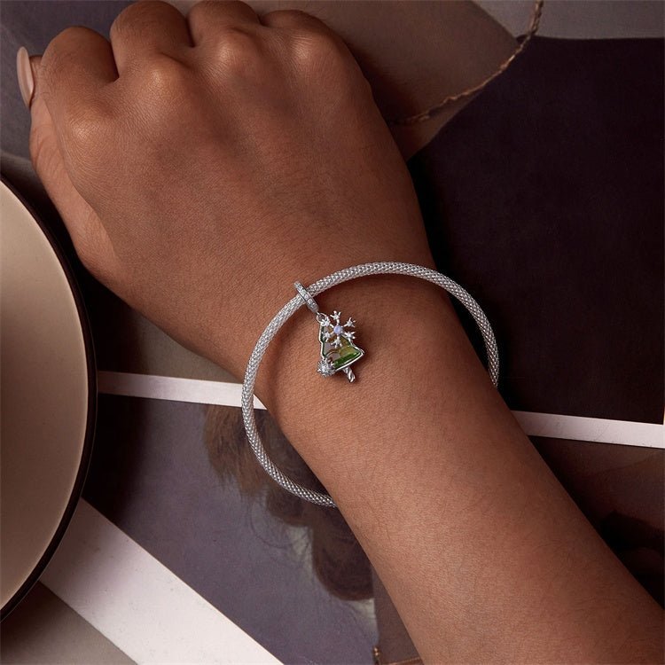 Ce sapin décoré de lunes, d’étoiles et d’un flocon est un symbole de Noël et de la magie. Il est lié à la tradition du sapin illuminé qui brille dans la nuit, à la beauté du ciel étoilé et à la féerie des flocons de neige. Il représente aussi la lumière, le rêve et l’émerveillement. Ce bijou charm en forme de sapin de Noël et flocons de neige s’adresse aux personnes qui ont un esprit de Noël, magique et lumineux, qui aiment se laisser transporter par l’imaginaire et admirer les merveilles de l’hiver. Ce charm est idéal pour exprimer votre lumière et votre magie.