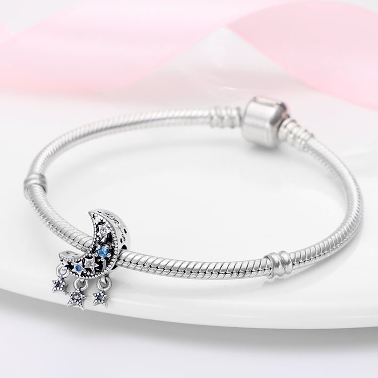 Le quartier de lune et les étoiles sont des symboles qui symbolisent la magie et le mystère. Ils sont liés à la nuit et au rêve, à la connaissance et à la vérité, à la prévoyance et à la clairvoyance. Ils représentent aussi le changement, l’évolution et la spiritualité. Ce bijou charm en forme de quartier de lune et d’étoiles s’adresse aux personnes qui ont un esprit curieux, perspicace et créatif, qui aiment voir ce que les autres ne voient pas et apprendre des secrets de la vie. Ce charm est idéal pour exprimer votre confiance et votre intelligence.